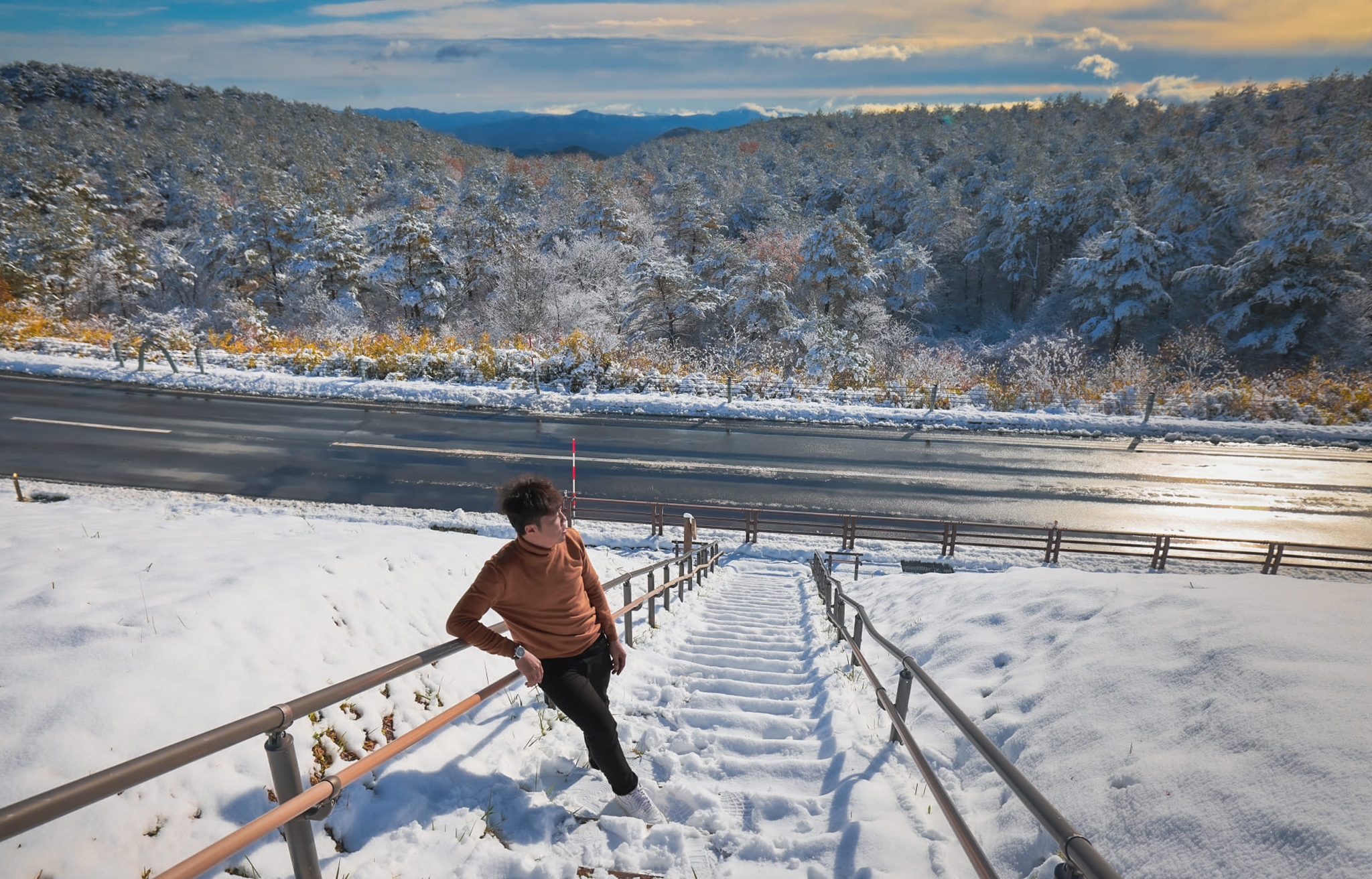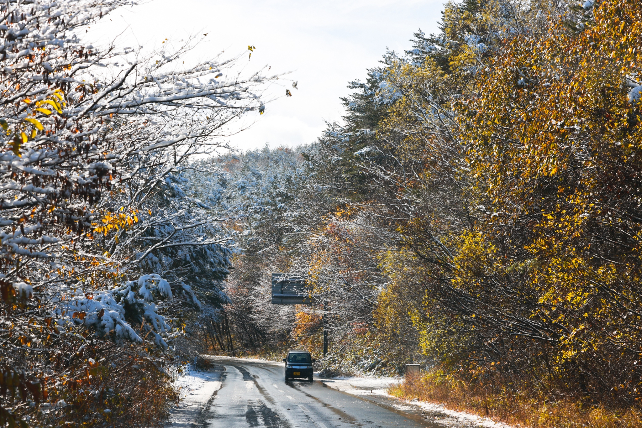 "Đêm trước đó nhiệt độ xuống 3 độ. Sáng hôm sau tuyết bỗng rơi liên tục, gió thổi ào ào, đường trơn trượt. Nhưng chỉ đi thêm vài kilomet sau đó thì như 'bước vào một vùng đất khác', không còn một chút tuyết nào, chỉ lá vàng lá đỏ", An cho hay.