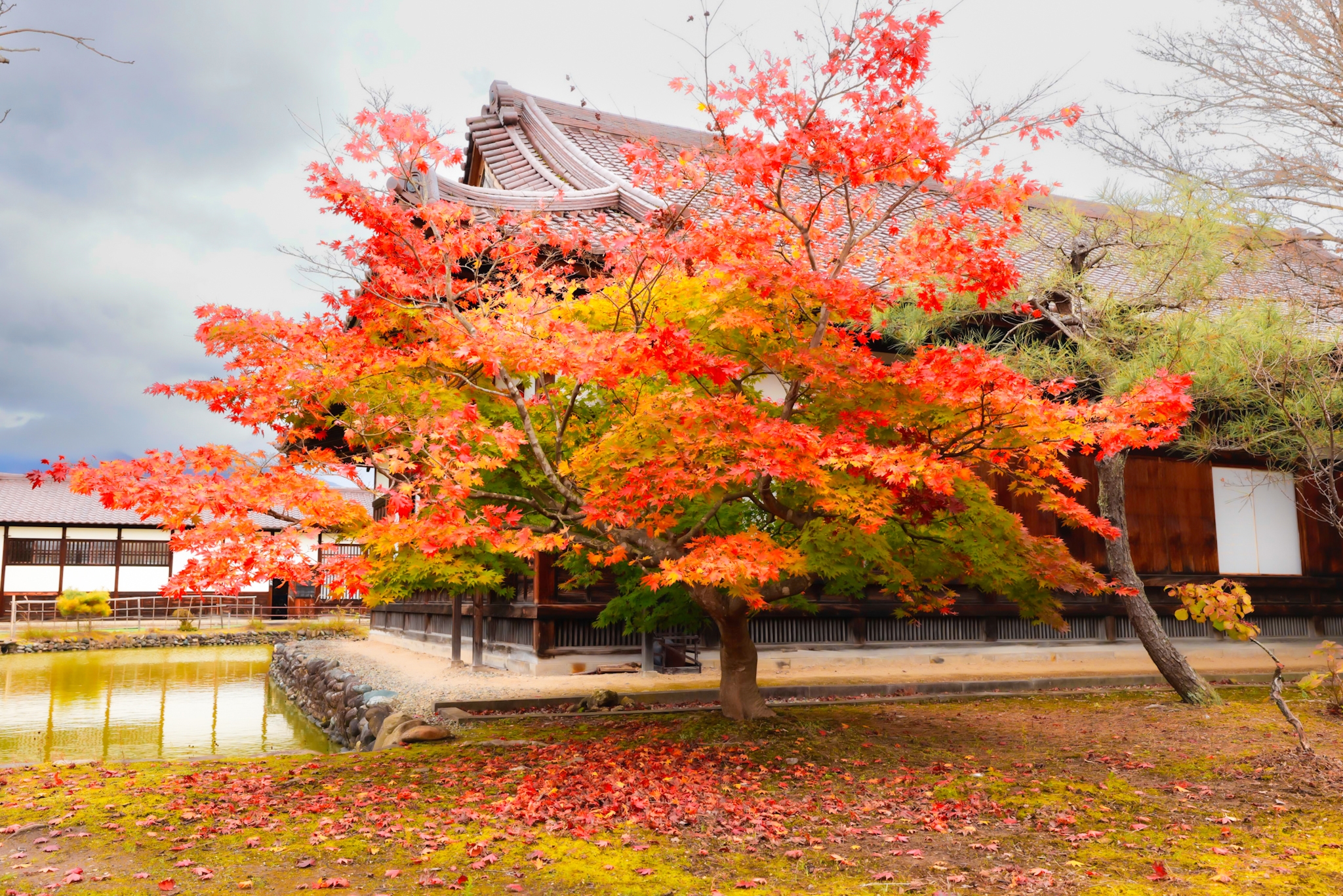 Một cây lá phong đỏ rực bên trong trường Nisshinkan nơi nuôi dạy những Samurai trong lịch sử.